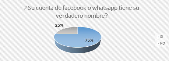 Al observar los resultados el 25% de los encuestados manifestaron contar con un perfil en redes sociales con información falsa respecto a su identidad y un 75% si tienen registrados sus datos correctos.