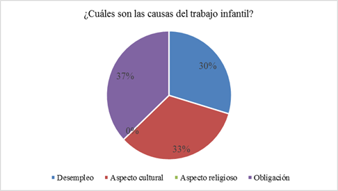 Una de las principales causas del trabajo infantil en esta comunidad es la pobreza, desencadenada por la falta de trabajo y ahora debido a la paralización de actividades económicas causadas por la emergencia sanitaria, que ha ocasionado que varias familias salgan a las calles para ofrecer sus productos y junto a ellos unos dulces rostros ayudando a sus padres y muchas veces por no decir siempre lejos de la supervisión de ellos. Pero una situación delicada se presenta de acuerdo a lo afirmado por Peraza de Aparicio (2020:508) Una de las aristas de esta nueva realidad que es la COVID-19, es la salud laboral. La salud de los trabajadores es un requisito esencial para los ingresos familiares, la productividad y el desarrollo económico de una nación y en la que los padres de familia se ven envueltos y contribuyen a la disminución de los ingresos familiares, forzando el trabajo infantil.