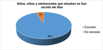 Así mismo, los padres de familia encuestados mencionaron que sin duda alguna, el aspecto económico fue el más perjudicado a nivel nacional y mundial, sin embargo en su sector, la educación resulto más afectada, no es menos cierto que los efectos económicos y de salubridad del COVID-19 también se vieron reflejados en dicho sector, empero de lo cual mostraron su preocupación de forma univoca respecto de la educación de sus niñas, niños y adolescentes, quienes manifestaron que un 95% de dicho recinto estudian, de los cuales un 87% estudian de en modalidad matutina y un 11% en vespertina. De ellos, la encuesta reveló que solo 84% tiene acceso a internet. Este porcentaje es suministrado a través de WIFI producto de diferentes empresas privadas.