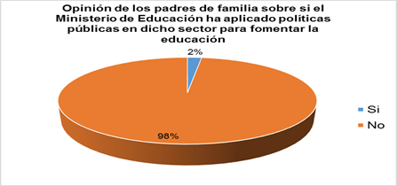 De acuerdo a los resultados de la encuesta evidenció que existe preocupación en los padres de familia de la parroquia San Jacinto del Búa del cantón Santo Domingo, puesto que, primero, la pandemia les limitó acceder al derecho a la educación, y segundo, por cuanto mencionan que no han existido políticas públicas del Ministerio de Educación en dicho sector para fomentar un correcto proceso educativo remoto, donde se denota la inconformidad de esta comunidad por la falta de iniciativa del órgano competente.