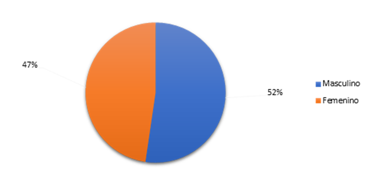 La distribución de los participantes, tal como se observa en el gráfico anterior, ha buscado mantener un cierto equilibrio; de ahí que el 52% son de sexo masculino, mientras que el restante 47% son de sexo femenino.