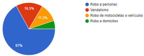 Por otro lado, el Código Orgánico Integral Penal (2014) estipula que un robo o acto vandálico se define como apoderarse de los bienes muebles de otra persona y puede ser castigado con pena privativa de libertad que va desde tres a veintiséis años dependiendo de la gravedad del acto. A pesar de lo legislado, se pudo evidenciar que en el sector de Alpachaca ocurren actos delictivos como robos y el vandalismo que hacen que se vulnere el derecho a la paz social como bien común. Estos actos, según la encuesta que se aplicó, son los más frecuentes, y al ser una zona en donde la Policía Nacional no actúa en marco del ordenamiento jurídico, existen delincuentes que están libres por las calles de Alpachaca, ocasionando temor en los moradores y violentando la paz social.