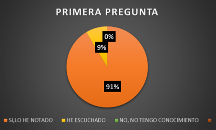 Se observa en la figura 1 que un 91% de las personas encuestadas considera que “SI” ha notado la presencia de trabajadoras sexuales dentro de la sociedad mientras que un 9% de las personas encuestadas manifiesta que “NO” visto o presenciado acto de presencia de las mismas trabajadoras sexuales.