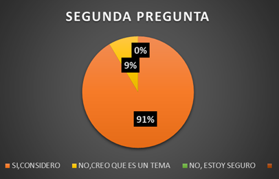 En esta pregunta se puede evidenciar según la gráfica 2, que el 91% de las personas encuestadas han considerado que ‘’SI’’ considera que la presencia de las mujeres que se encuentran trabajando en esa zona como trabajadoras sexuales si dan una mala imagen para nuestra ciudad, debido a que ahuyenta a los turistas y normaliza esta situación en la sociedad y el 9% de las personas encuestadas argumentan que ‘’NO’’ afecta el trabajo que realizan las meretrices a la imagen de la ciudad.