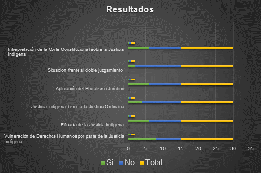 Resultados de la encuesta aplicada a los profesionales del derecho que participaron en la misma que consiste en los límites e interpretación la justicia indígena.