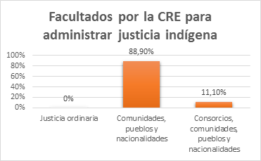 En tal razón, la CRE en su art. 57 del capítulo cuarto concerniente a los derechos de las comunidades, pueblos y nacionalidades, reconoce y garantiza derechos colectivos, entre los cuales se encuentran: defender y promover su forma de organización, así como sus tradiciones ancestrales, el ejercicio de la autoridad, dentro de sus comunidades, el ejercer su derecho propio, respetando los derechos garantizados en la CRE (Asamblea Nacional Constituyente, 2008). De la misma manera, el art. 171 también reconoce la administración de justicia indígena a comunidades pueblos y nacionalidades con base en sus tradiciones y derecho propio, sus decisiones no deben ser contrarias a la constitución ni a los tratados internacionales de derechos humanos (Asamblea Nacional Constituyente, 2008).