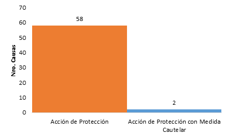 La garantía de motivación se estudió en las decisiones judiciales de acciones de protección que ha resuelto la Unidad Judicial de Familia, Mujer, Niñez y Adolescencia del Cantón Cuenca divididas en 58 acciones de protección y 2 acciones de protección con medida cautelar desde julio a diciembre de 2019 (figura 1), la principal guía fue el libro de ingreso de causas facilitado por la Coordinación de la Unidad Judicial de Familia, las sentencias analizadas se las obtuvo del sistema SATJE del Consejo de la Judicatura de Ecuador mediante la búsqueda de las resoluciones ingresando de forma manual su numeración, la restricción espacial y temporal fue a sentencias de primera instancia, toda la información que se analizó es pública.