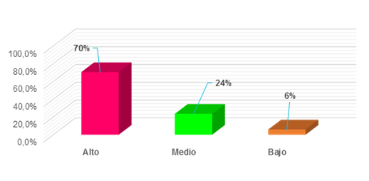 Referente al impacto de la creación de nuevas líneas jurisprudenciales por parte de la CCE en la garantía de AP, se tiene como resultados que el 70% (ver figura 2) de los encuestados consideran que es alto el impacto que genera en la normativa constitucional, puesto que la jurisprudencia a más de ser considerada como una fuente del derecho tiene el carácter vinculante e influyente en un Estado, en tanto que, el 24% señalo que es medio el impacto y en efecto, el 6% considera que es bajo el impacto es decir, estos resultados reflejan la afectación que genera la evolución jurisprudencial en el sistema constitucional de derechos.