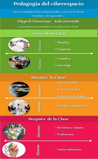 La pedagogía del ciberespacio permite crear una ruptura de las relaciones de poder entre docentes y estudiantes dentro del aula, en donde su rol debe ser replanteado en donde el estudiante pasa a ser el centro de construcción del aprendizaje y el docente en el guía y mediador pedagógico para alcanzar los objetivos educativos considerando el avance tecnológico para implementación en la educación (Hermann-Acosta, 2011).