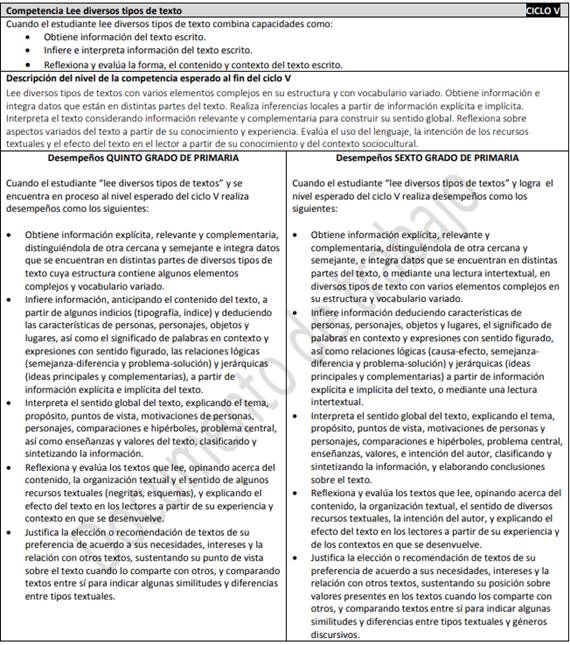 Figura 1. Competencia: lee diversos tipos de texto – ciclo V.