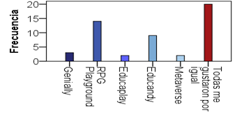 Nota: Aunque a la mayoría de las respuestas señalan que todos los juegos gustaron por igual, el más gustado es RPG Playground.