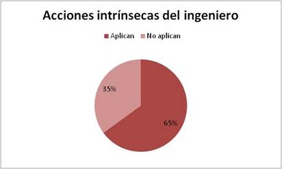 En la figura 1 se puede evidenciar que el 65% de los estudiantes de ingeniería consideraron que las acciones intrínsecas del ingeniero sí aplicaron dentro de las sesiones de clase, mientras que el 35% opinó que no aplicaron. Es importante destacar que estas acciones deben desarrollarse en el ingeniero, por cuanto permite que los mismos se desempeñen de forma integral, tanto dentro de su área como dentro de otros campos del saber. Esta afirmación es complementada por Aravena et al. (2022), quienes precisan: “En particular, adquirir habilidades para analizar, interpretar y proyectar soluciones, pues están declaradas como intrínsecas al trabajo del ingeniero” (p. 51).
