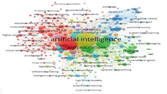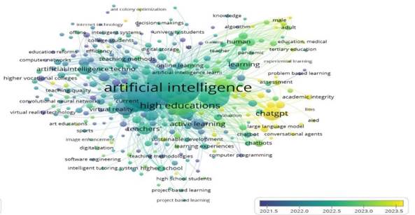 La revisión bibliográfica realizada demostró que, en la educación superior, la enseñanza y el aprendizaje asistidos por IA ha emergido como campo relevante con tendencia al crecimiento y un alto impacto en cuanto a la relación cita/publicaciones. Según se pudo comprobar en el análisis de palabras clave, las investigaciones estuvieron interesadas en cuestiones relacionadas con los tipos de aprendizaje, los agentes educativos y los niveles de enseñanza, las oportunidades para mejorar la evaluación y el desarrollo de nuevos modelos y aplicaciones.