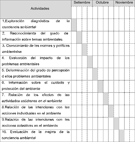 El cronograma de actividades de la propuesta se detalla en la tabla 3.