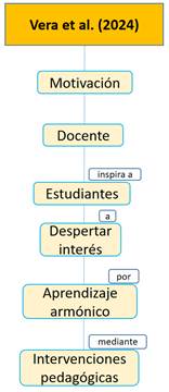 Vera et al. (2024) resaltan la importancia de la motivación en el desempeño académico docente, ya que esto, a su vez, inspira a los estudiantes a despertar sus intereses por aprender armónicamente mediante intervenciones pedagógicas idóneas (Figura 5).