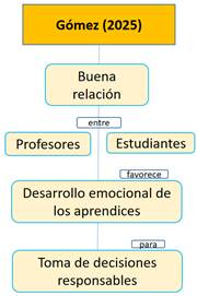 Gómez (2025) asevera que la buena relación entre los profesores y estudiantes favorece el desarrollo emocional de los estudiantes, conduciéndolos a tomar decisiones responsables dentro de sus interacciones sociales (Figura 6).