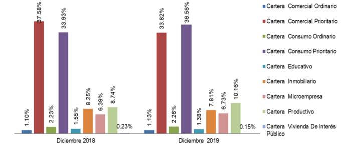 Figura 2. Cartera bruta por tipo de crédito, diciembre 2018 – diciembre 2019