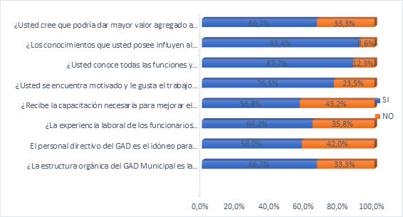 En la investigación realizada mediante encuestas, entrevistas y revisión de la información documental dentro de la municipalidad, institución que forma parte del sector público del país, se presentan los siguientes resultados obtenidos luego de aplicar las técnicas de investigación a los funcionarios de la municipalidad, con base a la evaluación del año 2020 en donde se reflejó un bajo rendimiento laboral, en las siguientes tablas se detallan los resultados de las encuestas realizadas a los funcionarios municipales.