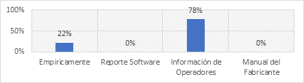 En cuanto a las razones que motivan la ejecución de un mantenimiento al equipo caminero el 78% establece que se aplica una vez que el operador del equipo informa sobre la falla o avería, mientras que el 22% manifiesta que se lo hace de forma empírica de acuerdo a la experiencia del personal de mecánica.