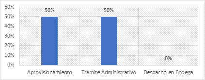 El 50% de los encuestados manifiesta que es el aprovisionamiento; mientras que el 50% restante manifiesta que se debe a los trámites administrativos. Lo que nos conlleva a interpretar que la carencia de un plan de mantenimientos hace imposible contar con un stock ni proveer las adquisiciones necesarias para intervenir en un mantenimiento.