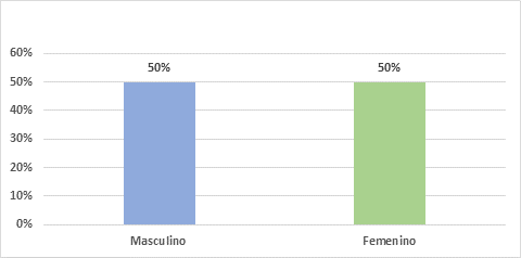 También menciono que hace falta contar con un plan de carrera para el personal para que exista mayor compromiso y por ende mejore su desempeño. En base a los resultados obtenidos de la encuesta aplicada, en el gráfico 1 se determinó que el 50% (31/62) de los colaboradores de la Cooperativa Credi Ya pertenecen al género femenino; mientras que el otro 50% (31/62) son del género masculino.