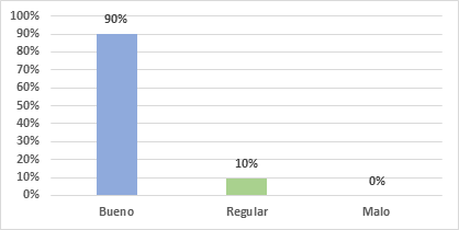 Dentro del gráfico 5, en cuanto al ambiente organizacional bajo el que se desempeña la cooperativa Credi Ya, el 90% (56/62) del personal manifestó que el ambiente laboral es bueno; sin embargo, el 9,7% (6/62) indico que el ambiente de la institución es regular.
