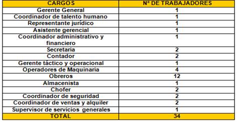 Es importante mencionar que la población de estudiado fue de treinta y cuatro personas que hacen vida en las empresas públicas seleccionadas. En la tabla 1 se detallan los cargos y el número de trabajadores que conforman la empresa objeto de estudio.