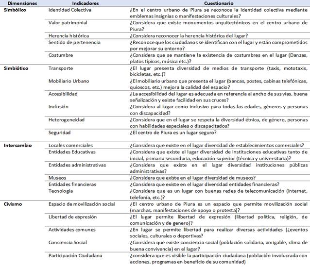 Dimensiones, indicadores e instrumento de la variable calidad del espacio público.