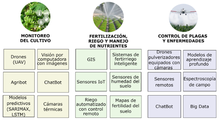 Figura 2. Tecnologías AP aplicadas por fases del cultivo.