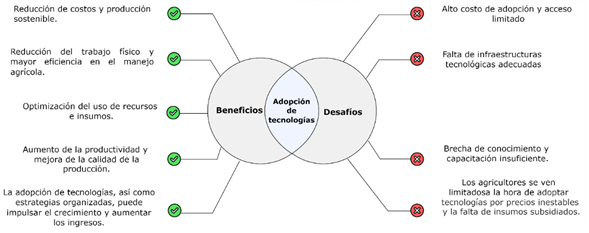 A continuación, en la Figura 4, se analizan los principales beneficios y desafíos asociados con la adopción de tecnologías de precisión en la agricultura.