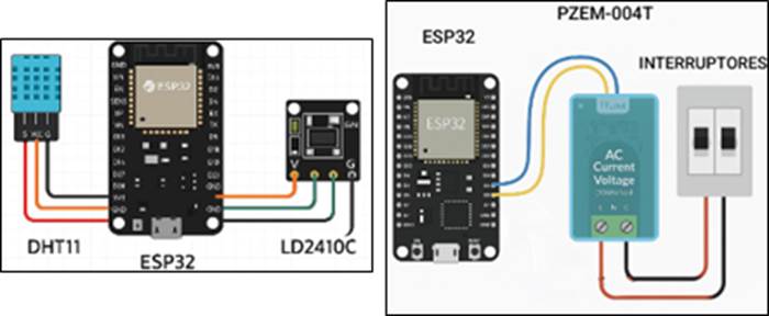 Figura 2. Integración de sensores PZEM-004T, DHT11 y LD2410C con ESP32.