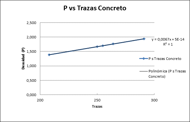 Gráfico 2. Comportamiento de Trazas de acuerdo a su Densidad para el Concreto. Fuente: Elaboración propia a partir de los datos obtenidos.