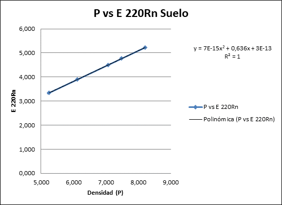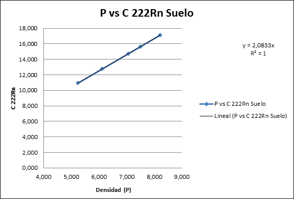 Gráfico 3. Concentración del 220Rn de acuerdo a su Densidad para el suelo.