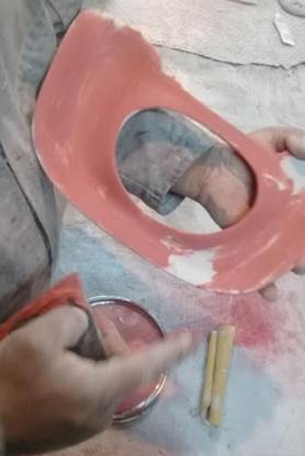 Además de la pieza mostrada se realizaron más piezas internas del vehículo, ya que al ser más pequeña la pieza fue más fácil realizarla. Lo que se probó también fue la forma de secado, como se observa en la siguiente imagen donde se utilizó una pistola de calor para acelerar el tiempo de curado. En la primera prueba que se tomó en cuenta este proceso se tuvieron algunas fallas como era la producción de espacios huecos en la mitad de la pieza.
