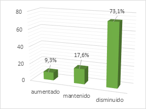 Realizando una comparación entre los años 2019 y 2021, en lo referente a las ventas se determina que existe un porcentaje muy alto de empresas que presenta disminución 73,1% un 17.6% ha mantenido sus ventas y 9,3% ha aumentado sus ventas como consecuencia de la crisis del COVID 19 (Figura 7).