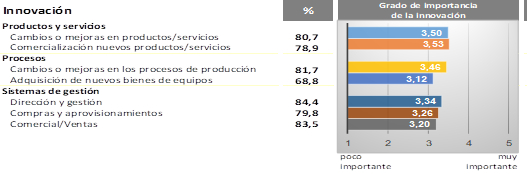En lo referente al tema de las innovaciones que ha generado la crisis a causa de la pandemia del COVID-19, se advierte un incremento de la actividad innovadora en relación a productos y servicios cuyo porcentaje arroja un 80,7% de las MIPYMES en Loja con un grado de importancia de 3,50 puntos. El 78,9% de la MYPIMES se han dedicado a la comercialización de nuevos productos y servicios.
