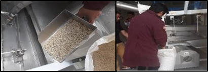 Se enciende la zaranda dosificadora y la máquina de quinua, para dar inicio a la escarificación de la quinua a continuación se muestran las imágenes del ingreso y salida de la Quinua.