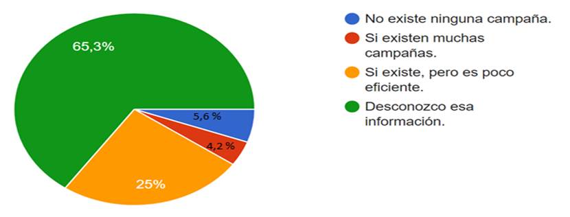 (1)no existe ninguna campaña (2) si existen muchas campañas (3) si existe, pero es poco eficiente (4) desconozco esa información