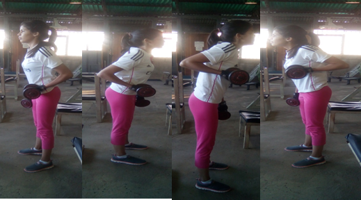 Este ejercicio requiere, en el caso de hacerlo sin ayuda de un equipo, estar de pie con el tronco paralelo al piso. Las piernas a la anchura de las caderas, semi dobladas para evitar tensión en los cuádriceps. Los brazos con los codos semi doblados, igual las muñecas, que deben ir hacia adentro como ya sabe para evitar tensión en el antebrazo. Como en el ejercicio anterior el codo en la dirección del deltoides que ejercita, que en este caso es el posterior. Recuerde dos cosas, la fuerza diríjala al subir el peso y por ser la abducción o el alejamiento la función de los deltoides, no suba ni baje completo.