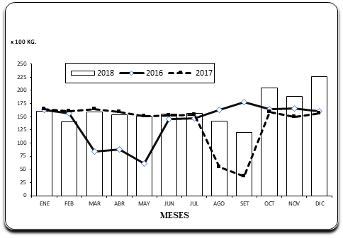 Según la figura 4 en el mes de diciembre se trataron 225.64 kg. De residuos hospitalarios, 204.5 kg. tratados le corresponden al mes de octubre, en el mes de noviembre se trataron 188.3 kg. de residuos hospitalarios, en el mes de enero se trataron 160.313 kg. de residuos hospitalarios, en el mes de marzo se trataron 158.47, en el mes de julio se trataron 156.06 kg., en el mes de junio se trataron 155.35 kg. de residuos, en el mes de abril se trataron 153.68 kg., en el mes de mayo se trataron 151.46 kg., en el mes de agosto se trataron 142.23 kg. de residuos, en el mes de febrero se trataron 140.86 kg. de residuos y en el mes de setiembre se trataron 120.15 kg. de residuos hospitalarios siendo este mes el mes que menos residuos ha tratado de que la planta de residuos del Hospital Regional Docente de Trujillo en el año 2018.