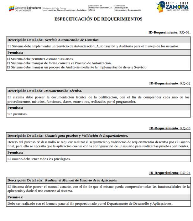 de Requerimientos 2.- Usuarios Personal Administrativo Fábrica VTELCA