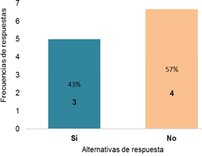 Como se puede observar en la siguiente figura, en lo que respecta a la existencia de sistemas o mecanismos de control interno que incluyan la formulación, ejecución, control, seguimiento y evaluación de los objetivos institucionales planteados, el 57% indicó que sí existen mecanismos de control interno; no obstante, el 43% señaló que no existen tales mecanismos de control, como se observa a continuación.