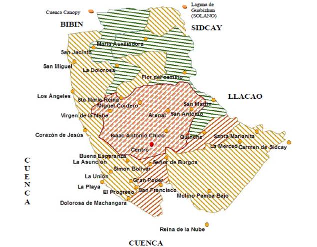 Identificamos la localización del sistema turístico que fue evaluada, indicando por consiguiente, los límites de la parroquia de Ricaurte que son: Al norte con la parroquia Sidcay, al sur con la ciudad de Cuenca, al este con la parroquia de Llacao, al oeste con la ciudad de Cuenca.