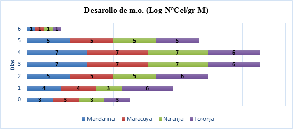 Las levaduras poseen picos altos de desarrollo, en el presente estudio fue durante el tercer día y el cuarto día de fermentación. Fue regular en todos los demás casos.