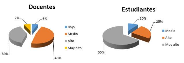Haciendo un análisis estadístico entre docentes y estudiantes ante esta nueva forma de enseñar online, se puede observar que los docentes y estudiantes manifiestan que la enseñanza impartida por estas herramientas tecnológicas tiene un nivel alto debido que las clases son claras y precisas.