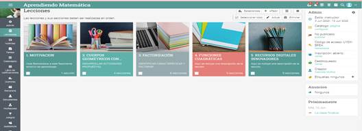 Figura 3. Clase Aprendiendo Matemática y recursos creados en una lección. Fuente: Elaboración Propia
