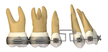 Para esta técnica se realiza la extracción de los primeros premolares superiores con una retracción en masa directamente de los 6 dientes anteriores mediante un retractor canino en T (figura 4), activando gradualmente cada mes de 1-2 mm para el cierre del espacio del diente extraído, consiguiendo una Clase I canina y Clase II molar, debido a que es una técnica con anclaje recíproco 15.