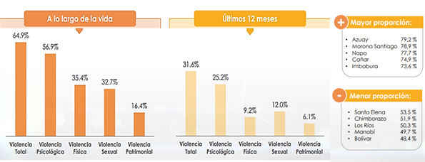 Para lo cual es necesario presentar datos informativos que sustentan esta investigación; tales como los obtenidos de la (Segunda Encuesta Nacional sobre Relaciones Familiares y Violencia de Género Contra las Mujeres - Envigmu, 2019), cuyos resultados fueron presentados el 25 de noviembre de 2019 la cual provee datos actualizados sobre actos violentos que han experimentado mujeres ecuatorianas mayores a 15 años de edad. Así como la información recolectada del trabajo de campo en la investigación realizada y la presentación de los datos obtenidos