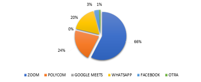 Por otra parte, se identificó que son tres las redes informáticas mayormente utilizadas durante las audiencias telemáticas: Zoom en el 66% de los casos, seguido de Polycom (24%) y WhatsApp (20%).
