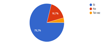 El 79,2% de los estudiantes piensan que la igualdad de género SI es primordial para una sociedad, el 16,7% piensan que NO es primordial la igualdad de género para una sociedad, y el 4,1% piensan que la igualdad de género TAL VEZ sea primordial para una sociedad.